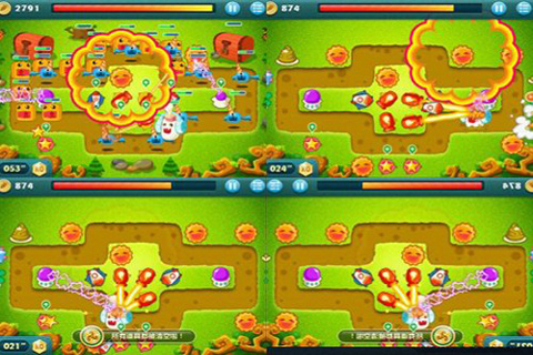当关键道具被完全清除后,还会留下地图边缘的一些小型道具,这时候玩家们却发现,还没等完全清除这些小型道具,可怜的BOSS已经被强大的火力打的只有一丝血了,怎么办?没错:暂停!按下地图右上方的暂停按钮,发现在暂停状态下也可以进行防御塔的买卖替换,这下好了,把打击BOSS的防御塔卖掉一部分,然后就可以集中精力清除道具,道具清空后,剩余的防御塔则会轻松了结BOSS的性命!