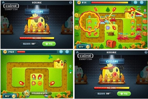 找到核心道具并优先清除,不必特别理会通道中的怪物,所谓磨刀不误砍柴工,关键道具中爆出的防御塔会在时限内消除一切怪物的!学会取舍,在第四关最后阶段,小编卖掉了所有不需要的防御塔,存款达到了14000金币,这完全不同于三大主题的过关技巧,是通关BOSS模式所需要具备的全新理念!对于手速较慢的同学,善用暂停键会给你充足的过关布阵的思考空间!