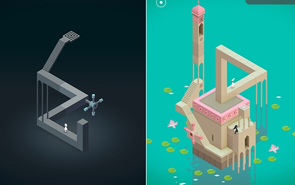 图中的正方体是凸出来还是凹下去的呢?看看《纪念碑谷》中出现的场景: