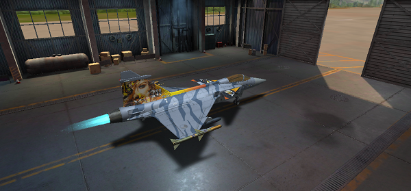 虎晴涂装的设计灵感来源于“老虎会”,独特的涂装风格十分引入注目。前翼两边各有一只老虎眼睛,如同凶猛的目光凝视着敌方,给人一种威慑力;机身使用灰蓝斑纹覆盖;其涂装独特之处是尾翼,尾翼上是半脸外国美女和老虎的半脸画像组合而成,达到了一种犀利与温柔结合的美学境界。它是TX-68鹰狮战机的涂装之一,也是其极具特色的涂装。TX-68鹰狮是一款A级敏捷型战机,拥有适中的导弹伤害和暴击率基础属性,在战斗中,可以有效提高暴击,增加敌方伤害。再装备此涂装,额外增加导弹杀伤力+6属性加成,可以更好地发挥敏捷型战机的优势。