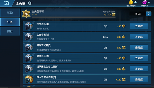 金头盔排行榜是通过对金头盔等级从高到底进行排名,金头盔等级是通过完成任务活动积分解锁。想在有限的时间内早日登陆排行榜首位,赶紧解锁黄金版任务并完成任务获取积分吧!