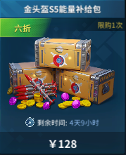 金头盔S5能量补给包(128RMB):[钻石]*1800,[金币]*40000,[能量水晶]*240