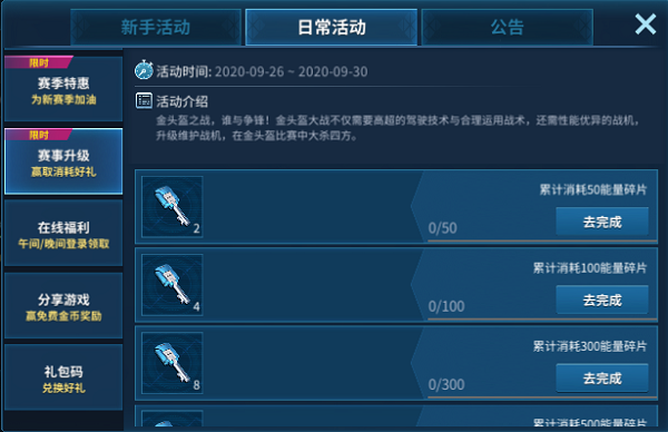 金头盔S5赛季已开启,备战新赛季,开启新征程!驾驶任意战机在排位模式中完成一定场次战斗,为新赛季做好万全准备!