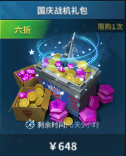 国庆战机礼包(648RMB): [JC-20天弩]*1,[钻石]*7500,[金币]*200000,能量水晶*400