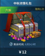 中秋浓情礼包(12RMB): [能量水晶颗粒]*550,[能量水晶碎片]*120,[低级伤害卡]*2