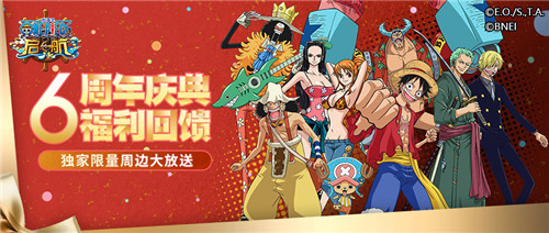 2021年1月《航海王 启航》六周年庆典福利来临,为3V3跨服竞技玩法-海上争霸赛全服第1-35赛季的冠军队伍每人送出一个《航海王 启航》独家定制路飞或奈美手办,以感谢全体玩家对游戏的热爱和支持。2021年1月28日,《航海王 启航》六周年庆典“宝藏湾秘宝之旅”活动开启,独家定制限量奈美手办、佐罗手办、艾斯手办、周年庆纪念币等精美周边免费获得,参与活动满6天能免费获得新春限定—SP佐罗十郎角色整卡,总价值百万元周边免费送出。