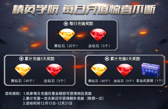 活动内容:玩家每日充值任意金额即可获得相应奖励,累计充值一定天数还可获得额外奖励(限领一次)