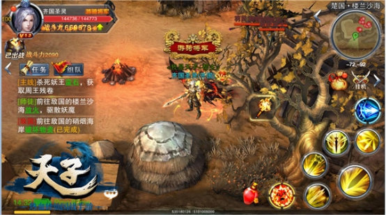 《天子》手游将国战系统作为游戏核心,并根据手机端的特点,简化了原本复杂繁琐的国战玩法,同时让玩家体验到丰富的交互玩法。同时游戏中更拥有许多合纵连横的创新玩法,玩家相互之间的合作、对抗、掠夺、结盟让“天子”世界每分每秒都充满变化,也带给玩家们一个真正由玩家自己掌控的手游大世界!