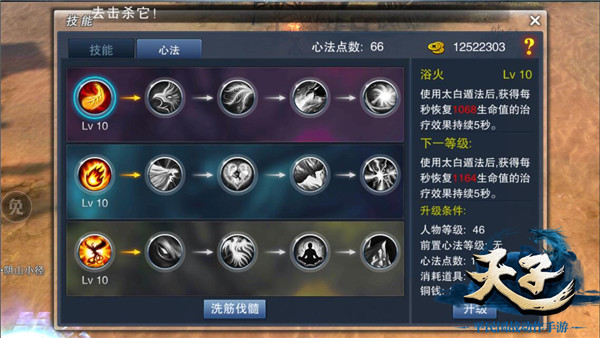 心法祝融就如火神祝融一般,大幅度增强了技能不周山倾的伤害。而心法天火增加的则是技能不周山倾的持续照烧伤害,让太清的输出能力再上一个层次。轮回的前置心法分别是浴火、栖梧、燎原和朱雀,修炼这四个心法会增加角色攻击力和韧性。