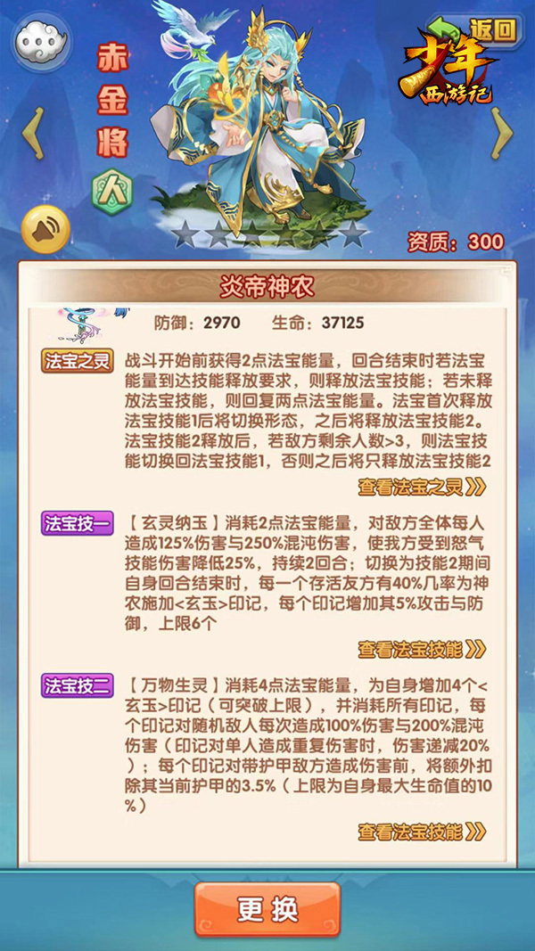 作为全新跨品质神将,三位赤金神将炎帝神农、帝鸿轩辕和九黎蚩尤拥有全游戏中独有的双重法宝技能。在战斗中,先通过第一个法宝技能来积累印记来增加自身的攻击和防御,再使用第二个法宝技能造成毁天灭地的伤害,以此来重创敌方神将。同时根据敌方场上的神将数量,还能在两个技能间切换,灵活应对不同的情况,完美掌控战局走向。