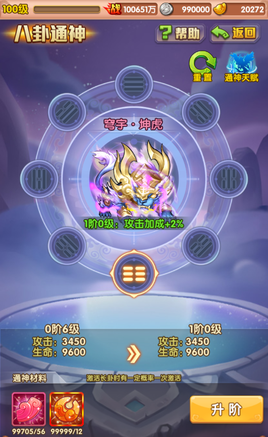 玩家可以借八卦之力,将紫金仙灵培养为赤金仙灵。培养时需要激活八卦之象中的各个爻阵,当爻阵全部激活时,就可以完全激活该卦象。当所有卦象全部激活时,紫金仙灵转化为赤金仙灵,各项属性获得大幅提升!同时仙灵的形象也会华丽升级 ,令人眼前一亮!