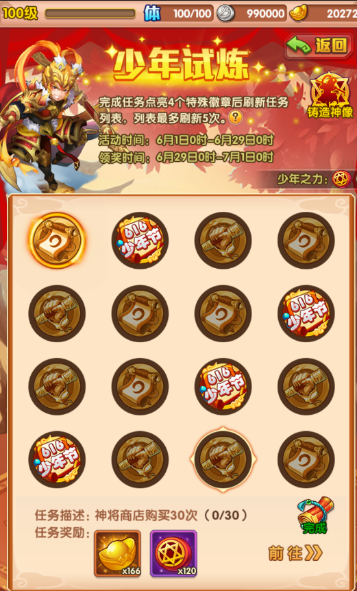 为迎接616少年节,备受玩家期待的福利活动少年试炼也将开启!玩家完成试炼任务,即可点亮对应的试炼徽章并获得奖励。特殊徽章需点亮所在行列或对角线的其他徽章后方可点亮,并获得惊喜奖励!