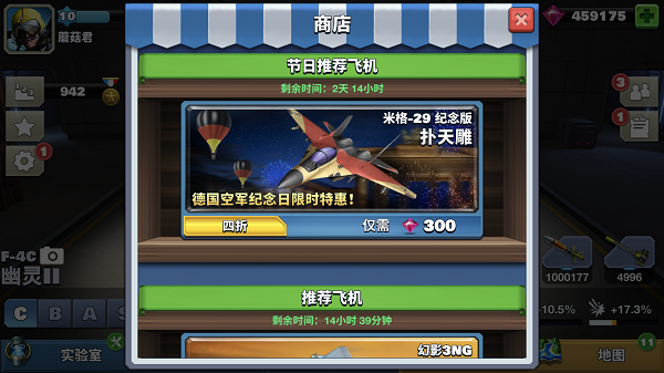 若您购买了米格-29纪念版“扑天雕”战机,赶快驾驶它来虐对手吧,一展雄姿,还有双倍金币奖励和双倍芯片在等你拿哈~就是这么任性!