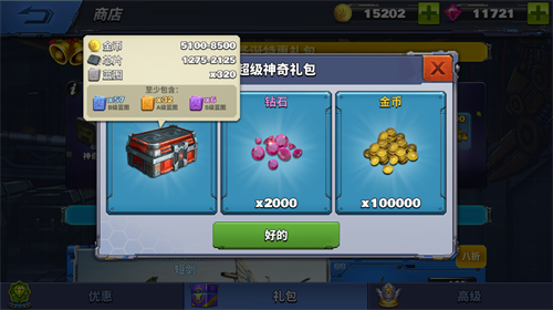 68元优惠礼包:钻石*2000,金币*100000,超级神奇补给箱*1