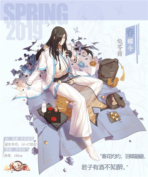 在这个温暖春日,《食之契约》将为各位御侍大人们献上由吴磊以及寺岛拓笃配音的人气SR飨灵龟苓膏的新外观——春碟令。“春花灼灼,羽蝶翩翩,君子有酒不知醉。”这位长发偏偏的美男子在春日将会有着怎样故事呢?大转盘活动即将在3月1日开启,即有机会获得该外观以及丰厚的奖励哦!