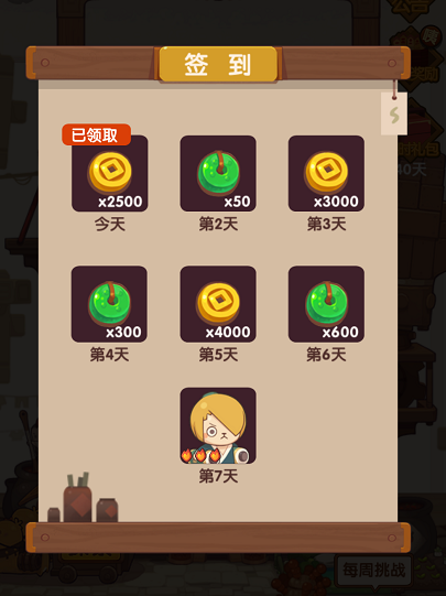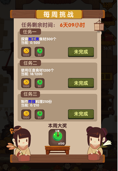 4每周挑战或参加厨神大赛,结算时有对应档位的奖励;