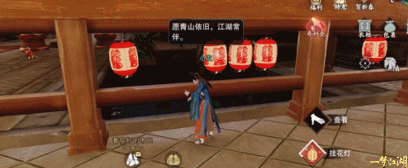 更有趣味满满的线下打卡活动,与江湖侠士团,等待少侠前往游园!我们还为少侠准备了2022线下专属头像框“与君行”与“良辰福袋”新春礼盒,期待与你一起赏灯品年味!
