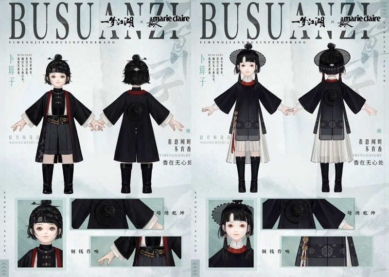 除了卜算子的词牌名外,云锦楼师傅在设计各体型外观时,还参考了时尚杂志中的潮流元素,将国风武侠与秀场时尚相结合,设计出了“卜算子”系列外观!
