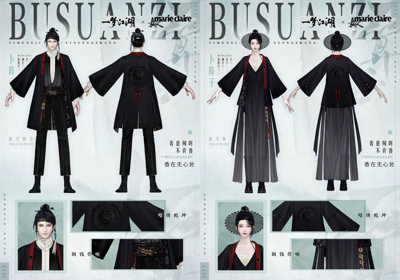 本次联动推出的两套时装,不仅是我们对国风之美的一种新的探索,更是一次时尚跨界的大胆尝试,愿与少侠们共赏。