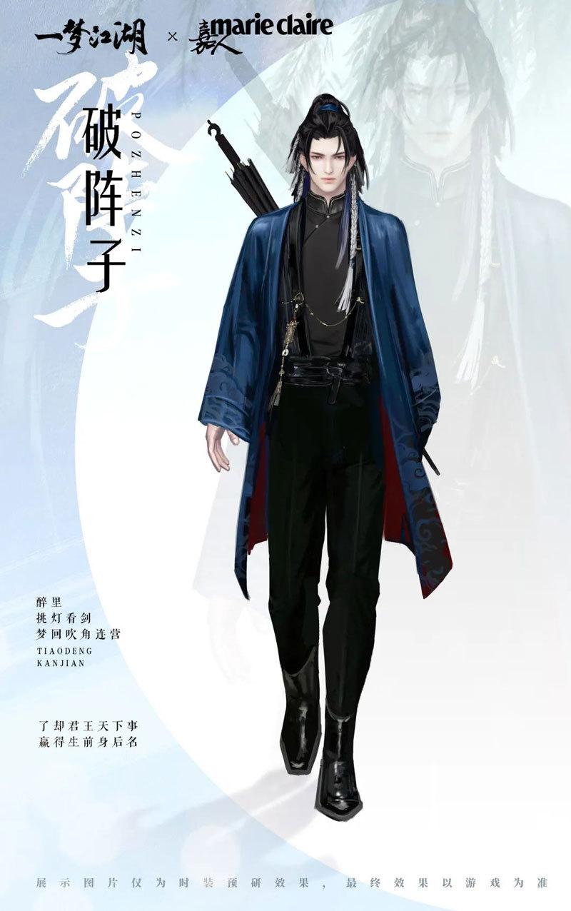 而“风与雅”主题联动下半部分的“破阵子·念奴娇”也正在筹备中,不同于卜算子的烟火气,破阵子和念奴娇作为同套不同款的情侣时装,分别体现的是“侠骨”和“柔情”两种气质,同样以国风为底蕴,加以潮流的时尚风设计,带来全新的视觉体验。