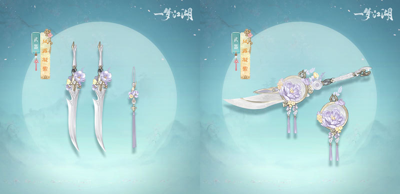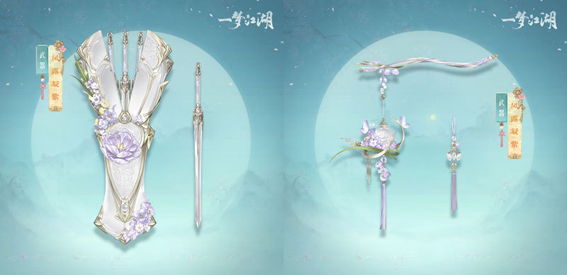 流云涵雪楼的品种珍贵的紫牡丹今日开化,昭华委托云锦楼大师傅以“紫牡丹”为题眼打造唯美的全新武器·风露凝紫。
