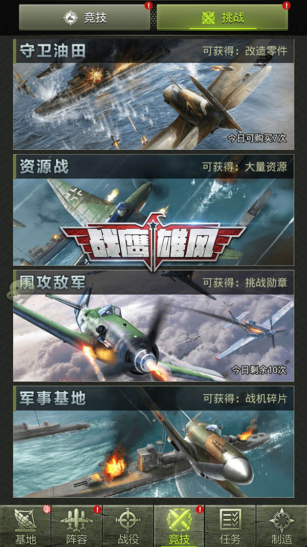 既然是一款军事题材的空战手游,对于玩法的策略性肯定是有很高的要求,《战鹰雄风》很好的将空战战场那斗智斗勇的云谲波诡还原在了游戏的玩法之中,玩家在游戏中除了要收集各类战机组建战队,更要合理搭配自己的出战战机,让战机获得连携所带来的战斗力加成,并且在战斗过程中把握好技能的释放时机,从而让战队火力全开。