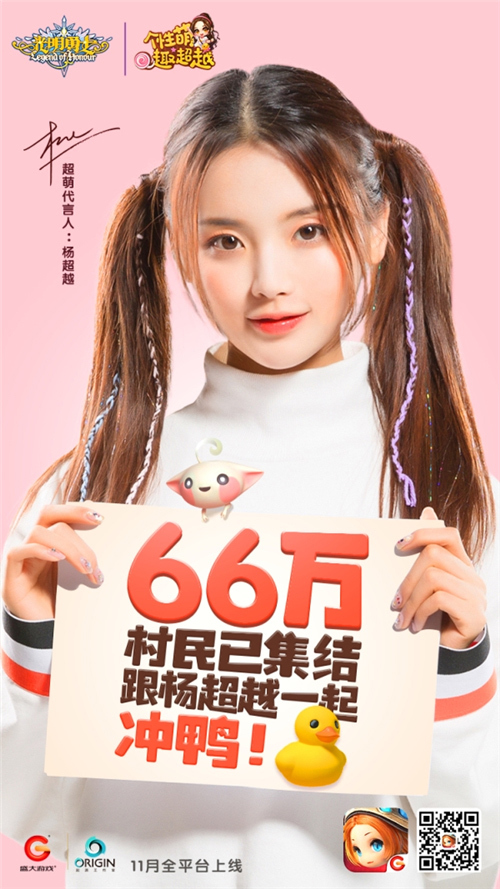 个性萌,趣冒险!由火箭少女101成员杨超越倾情代言,盛大游戏首款3D萌系超自由冒险手游《光明勇士》今日宣布将于11月21日正式开启超萌公测!元气Q萌的异世界风光,自由探索的冒险故事,萌趣横生的多样玩法,还有超给力的集结大礼包和多重公测福利等你领取!各位萌主们,跟着杨超越,我们一起向卢米娅大陆进发吧!