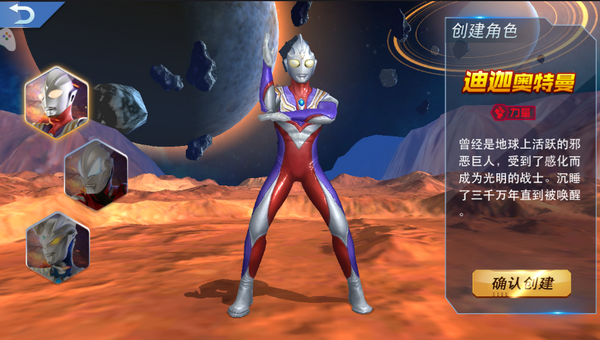 在游戏开始我们开始只有迪迦复合型可以选择。
