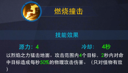 “燃烧撞击”用力砸击地面对周围小怪兽们造成持续性伤害。