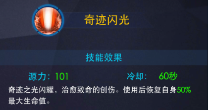 “奇迹闪光”用光来恢复自己的能量,能够恢复自己最大生命值的50%!