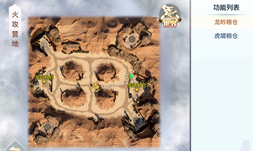 《龙武》手游中,火攻粮营地图两端分别为虎啸营与龙吟营两大粮仓。玩家在进入地图后将被随机被分配到任意营地内,开始争夺地图中心唯一的火把,并前往对方营地点燃粮仓,而在限定时间内烧毁地方粮仓数目高者将获得最终胜利!