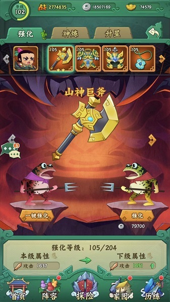 “一键强化”这是一个神奇的按钮,可以一下将装备提升至当前强化上限,请谨慎点击,实在是太爽了