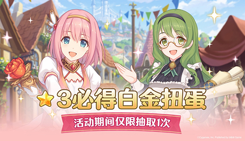11月23日 维护后~11月30日10:59,游戏内将开展「☆3必得白金扭蛋」活动,十连里最后一名角色必是三星,公主庆典扭蛋限定角色克莉丝提娜也会加入到⭐3必得白金扭蛋中!还请各位骑士君不要错过~
